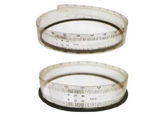 柔性尺(_):采用非金屬材料(膠片材料),適用于柔性材料平均內(nèi)徑測(cè)量和平均外徑測(cè)量。例如各種橡膠密封圈平均內(nèi)徑或平均外徑的測(cè)量。 特點(diǎn):柔韌性好,精度高且穩(wěn)定;透明讀數(shù),測(cè)量方便快捷;結(jié)構(gòu)合理,無(wú)需測(cè)量輔件;攜帶保管方便。 結(jié)構(gòu):僅由一條柔軟材料構(gòu)成,其兩端分別有主尺和付尺,主尺_(dá)小分度值為0.5mm。付尺_(dá)小分度值為0.05mm。 使用方法: 內(nèi)徑測(cè)量:先將密封圈任意放在平臺(tái)或玻璃板上;將柔性尺卷成小于被測(cè)密封圈內(nèi)徑的圓圈,同時(shí)放于被測(cè)密封圈內(nèi),付尺貼近內(nèi)壁;手推柔性尺,擴(kuò)大其圓周,使其與被測(cè)密封圈內(nèi)壁貼合;采用游標(biāo)原理讀數(shù),即得出被測(cè)密封圈內(nèi)徑。 外徑測(cè)量:先將密封圈任意放在平臺(tái)或玻璃板上;將柔性尺卷成大于被測(cè)密封圈外徑的圓圈,同時(shí)套于被測(cè)密封圈外,付尺貼近外壁;手推柔性尺,縮小其圓周,使其與被測(cè)密封圈外壁貼合;采用游標(biāo)原理讀數(shù)(讀數(shù)減0.2mm),即得出被測(cè)密封圈外徑。