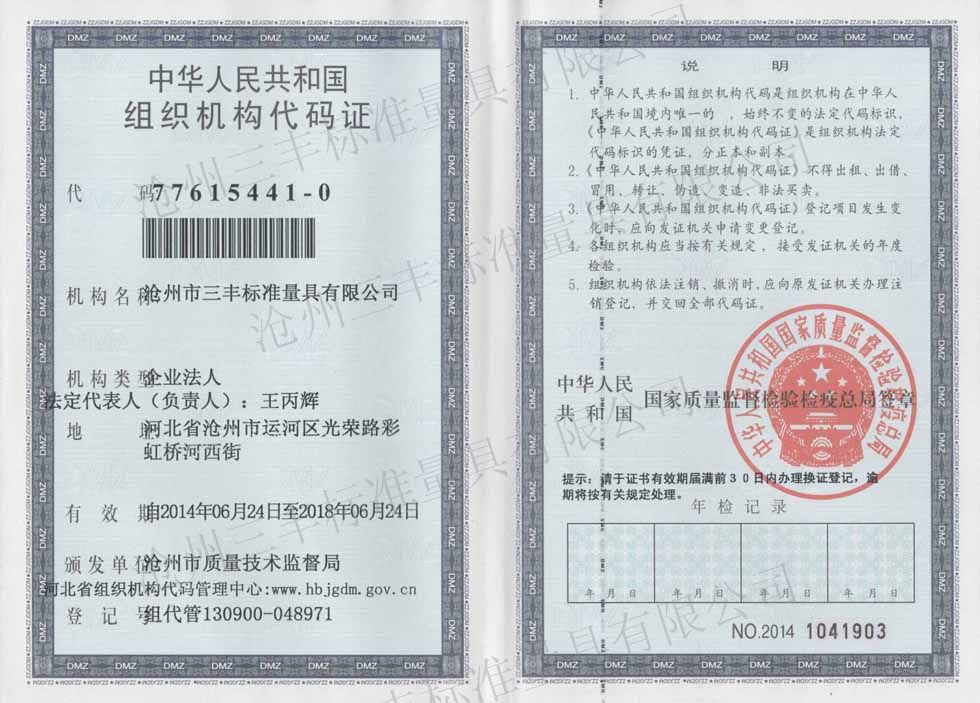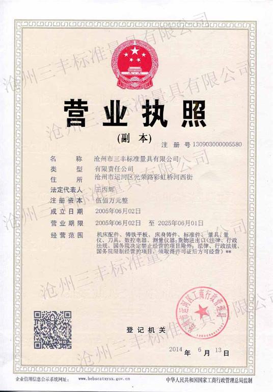 名稱:滄州市三豐標準量具有限公司